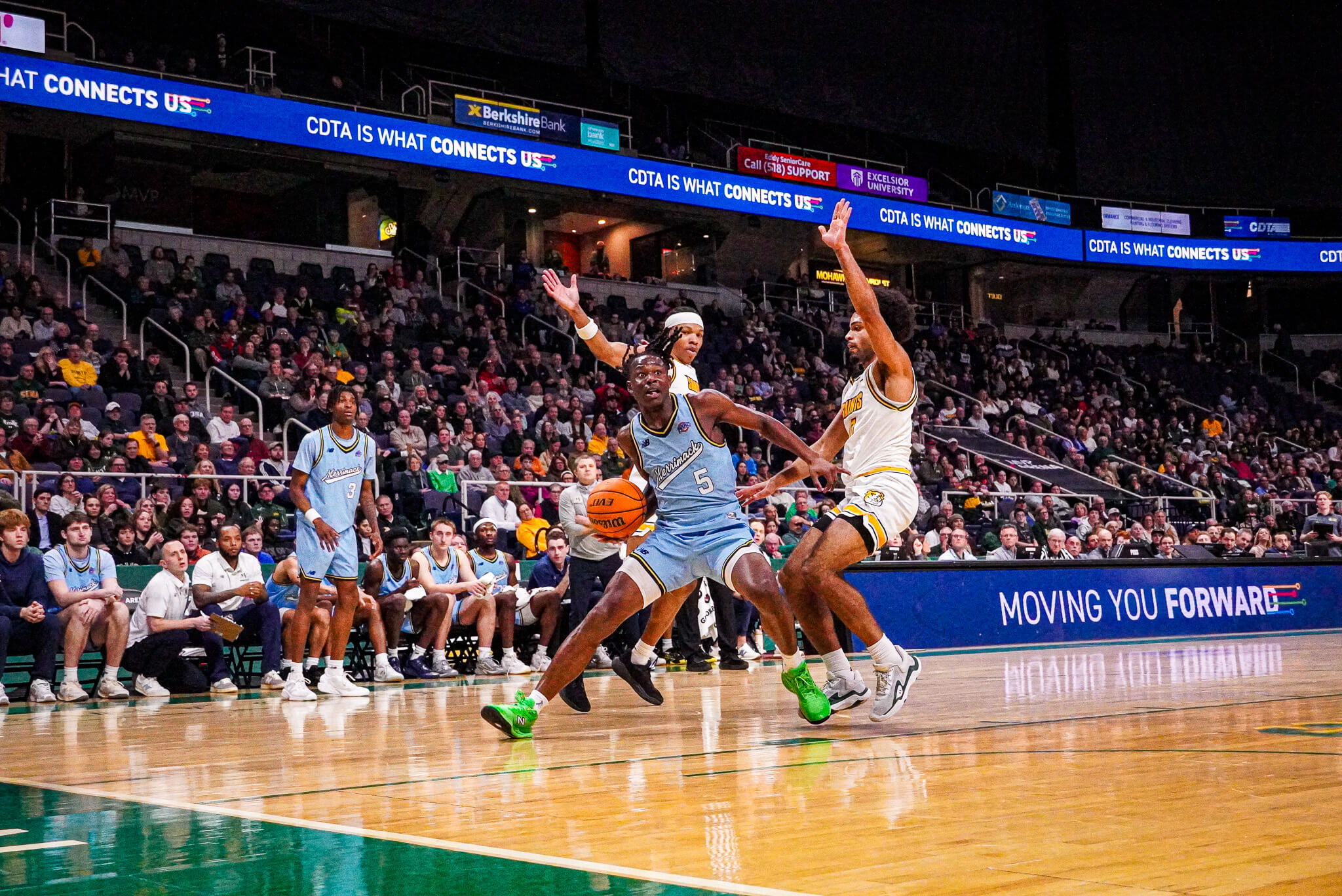 Out of a timeout, Merrimack delivered a timely response, executing a clean out-of-bounds set that resulted in a pick-and-roll dunk for No. 23, halting Siena’s momentum.