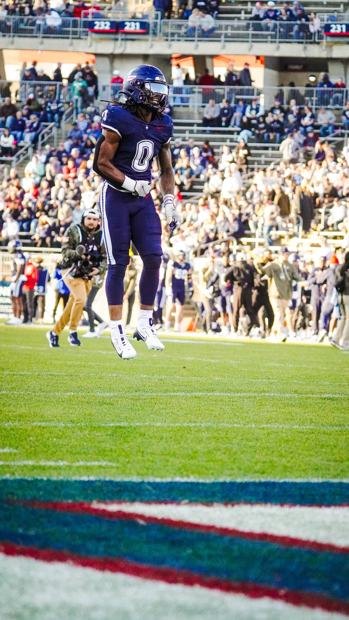 Duke’s drive at the end of the first quarter regained momentum for the Blue Devils. An eight-play, 3:30 drive concluded with a 10-yard touchdown pass from Mensah to Andrel Anthony, putting Duke back on top 14-10. True to form, Connecticut countered on their next possession, methodically moving 73 yards over 12 plays in more than six minutes, culminating in a Skyler Bell touchdown to reclaim a 17-14 lead. UConn’s defense then held strong, forcing multiple Duke three-and-outs. Cornerback Devin Pringle’s late second-quarter interception set up Freeman’s 45-yard field goal, extending the Huskies’ advantage to 20-14 heading into halftime.